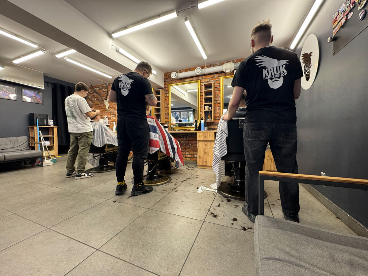W Kruk Barbershop strzygą wyłącznie faceci. Barberzy, którzy znają się na rzeczy. Nie udajemy ekspertów - po prostu nimi jesteśmy. Jeśli nie pamiętasz imienia swojego barbera, krzyknij "Michał!". Szansa, że trafisz - ogromna. Dwóch barberów, jedno imię, zero stresu. Z każdym cięciem budujemy relacje. Czasem to szybka stylizacja, innym razem dłuższa rozmowa o życiu. Często śmiejemy się, że widujemy się z klientami częściej niż oni ze swoimi ziomkami. Ale to prawda - tu każdy wraca, bo wie, że dostanie nie tylko świetne cięcie, ale też kawałek przestrzeni tylko dla siebie.
