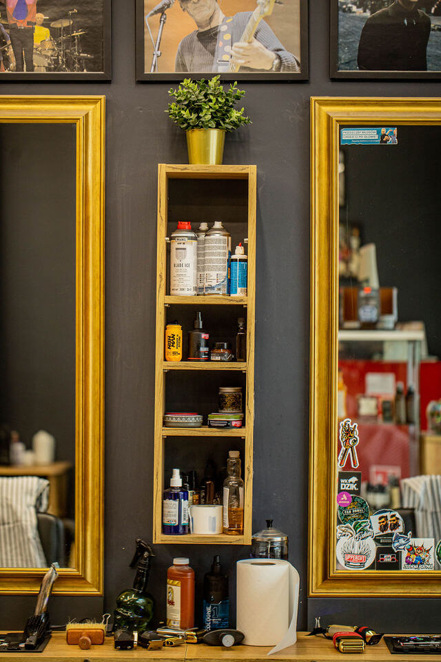 Salon Kruk Barbershop Bohaterów Września 1E został zaprojektowany z myślą o męskiej estetyce. Mocno drewniane wnętrze zaprasza do środka każdego wielbiciela industrialnej przestrzeni. Na ścianach wiszą duże, pozłacane lustra, jeszcze puste, czekające na zapełnienie naklejkami wspomnień, jak w pozostałych, dłużej działających salonach Kruk Barbershop. Jednak najfajniejszą rzeczą są ekstra-wygodne, nowoczesne fotele z symbolem mercedesa! Poczuj się jak na wyścigu w Formule 1, po najlepsze strzyżenie! Mamy również profesjonalną myjkę, a łącznie salon mieści 4 stanowiska barberskie. W poczekalni jest sporej wielkości sofa, dlatego jeśli przyjedzieciesz wcześniej to spokojnie możesz poczekać na swoją wizytę rozsiadając się wygodnie z kawką lub whiskey.